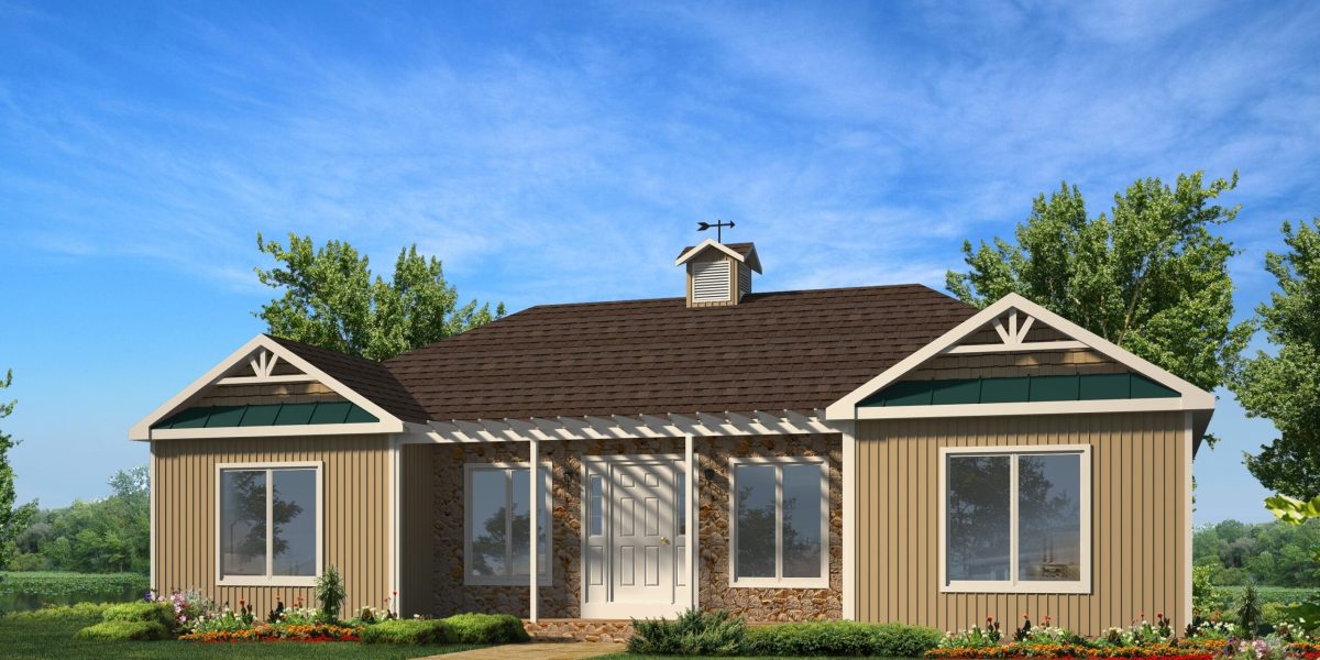 The end unit of a 6 unit multi-family modular home. This one story unit has 2 bedrooms, 2 bathrooms, full laundry room off the attached